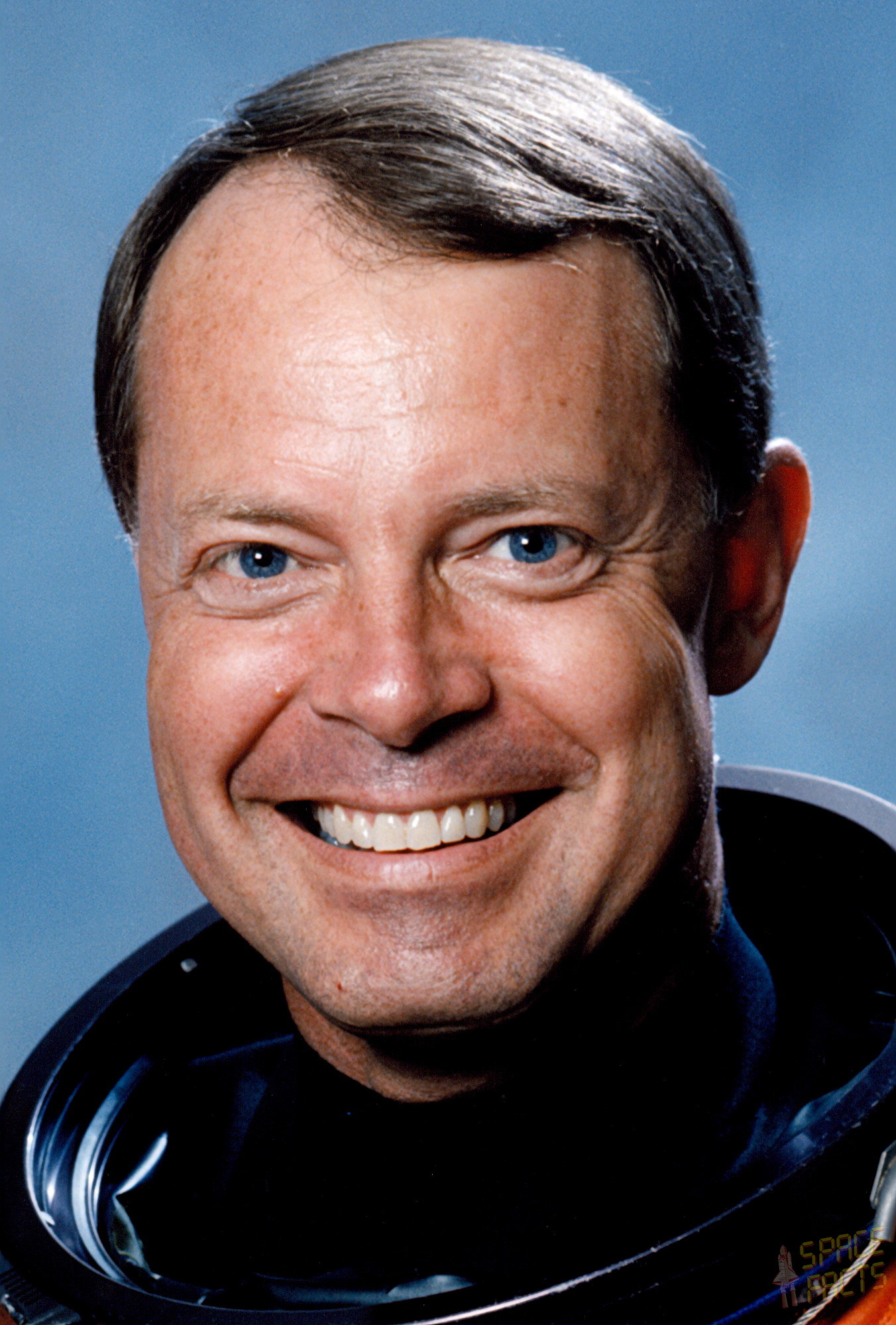 Ret.; test pilot; hobbies: Tennis, golf, squash, skiing, sailing, scuba diving;